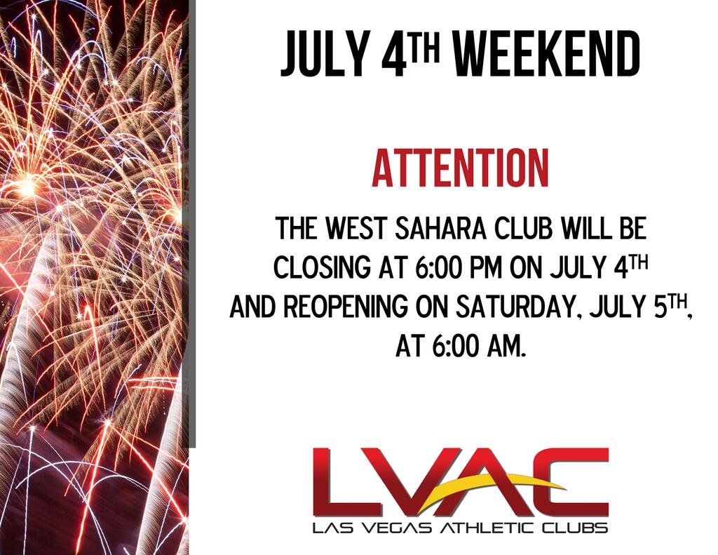 Las Vegas Athletic Clubs On Twitter Reminder 4th Of July West Sahara Lvac Schedule Http T Co Dnkw5ocbr4 Twitter
